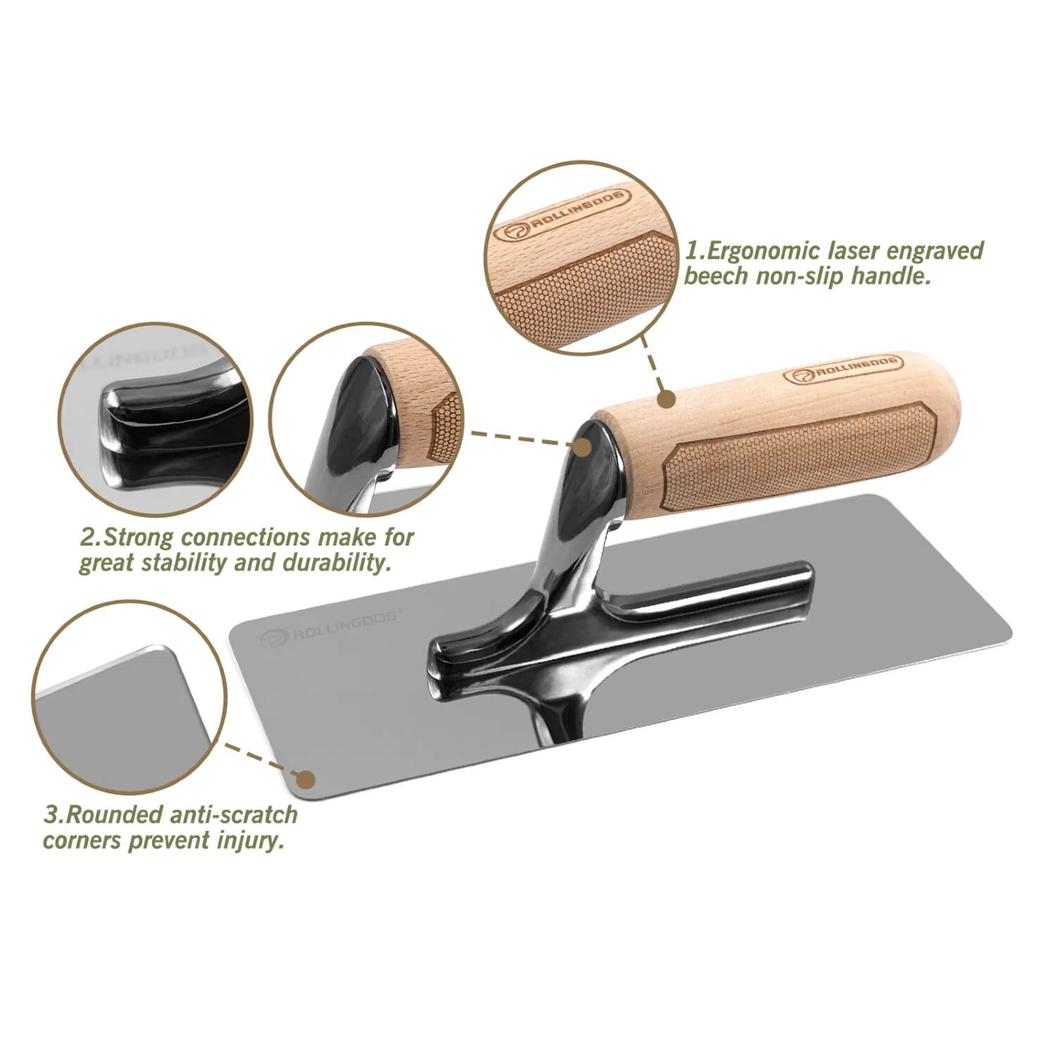 Beveled edges and rounded corners allow smooth application without scratching, making it the ideal tool for polished plaster, concrete, and other decorative surface techniques.