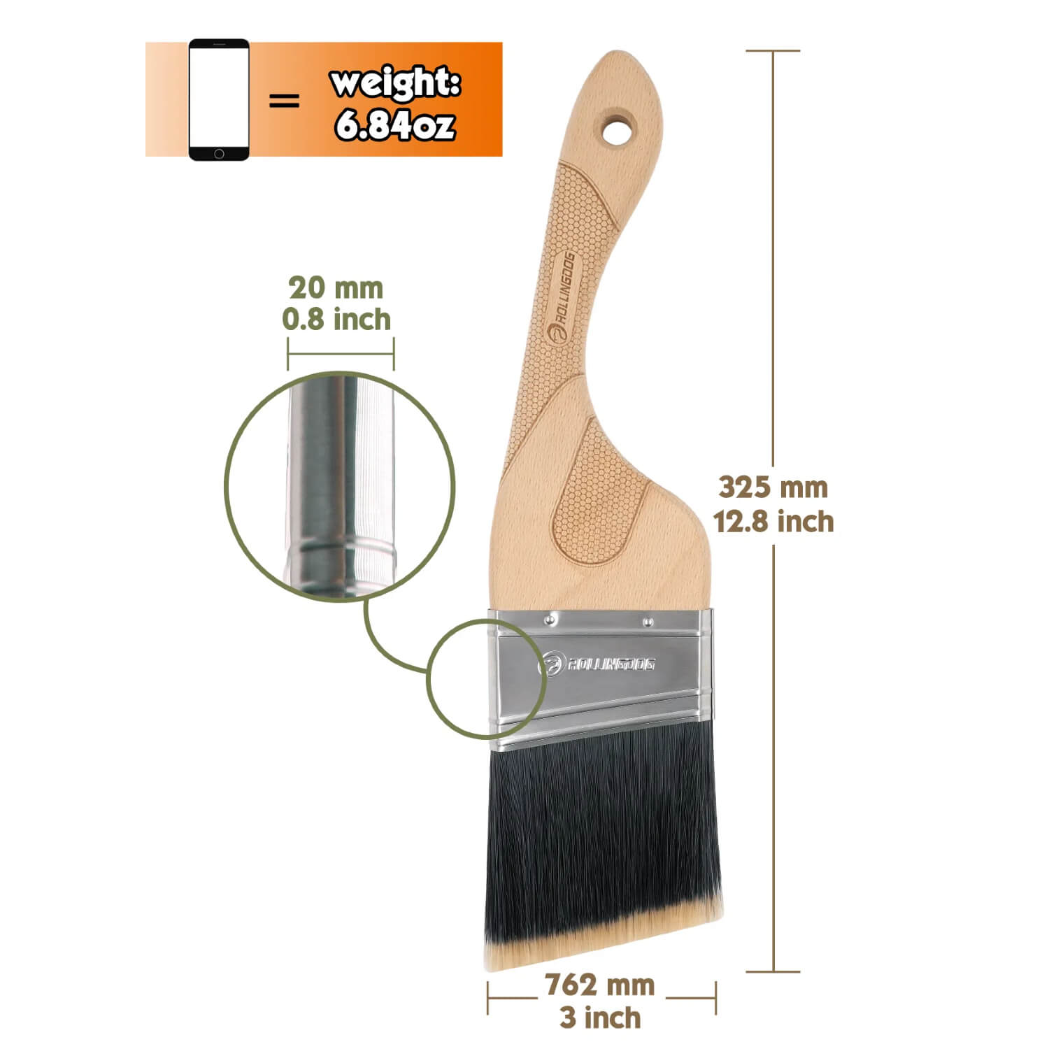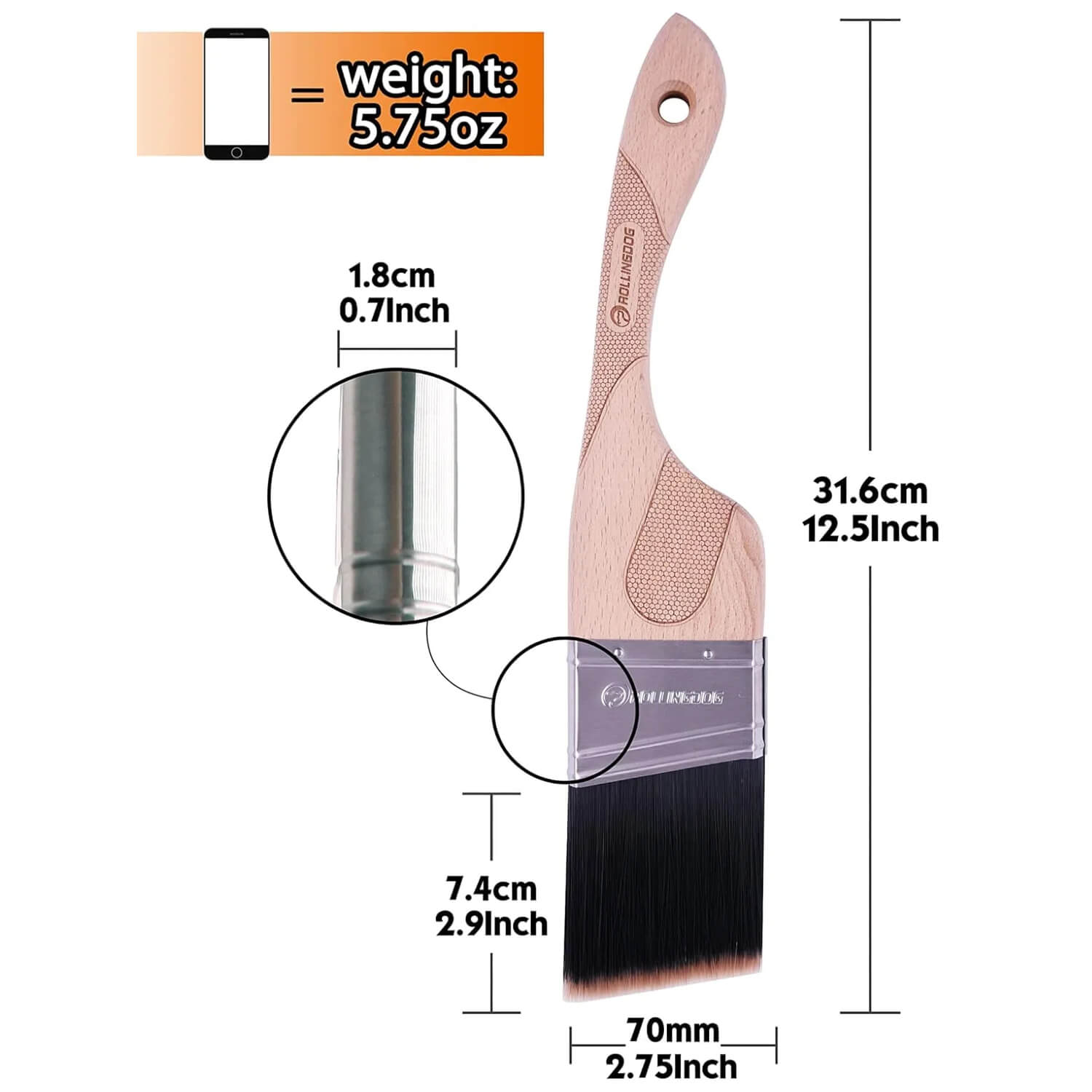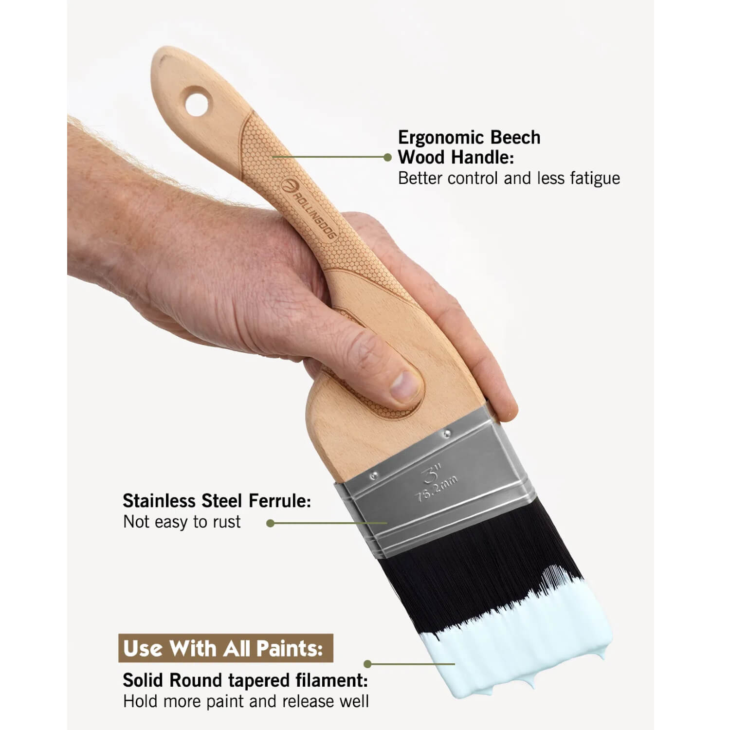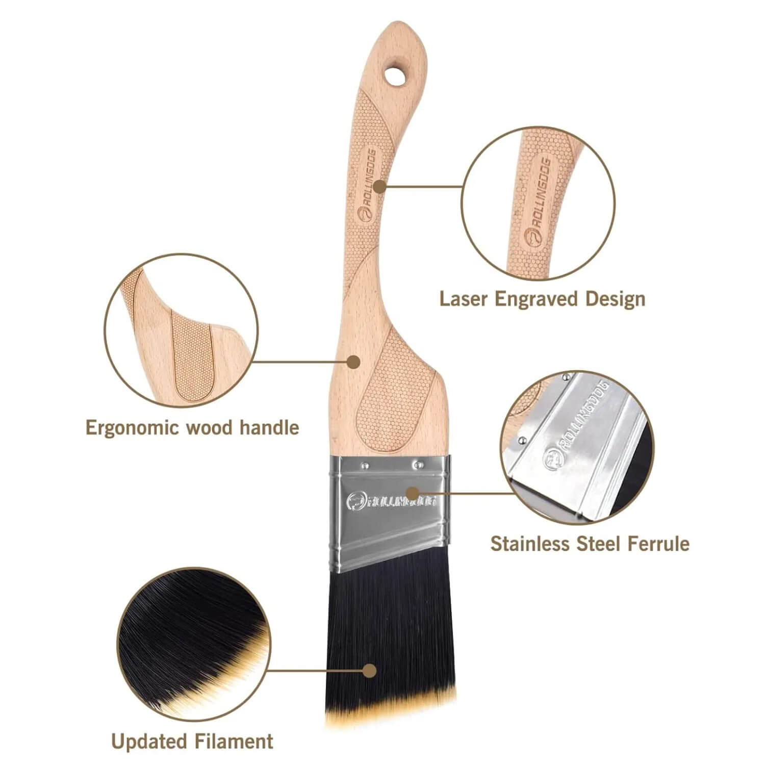 ROLLINGDOG Angled Paint Brush - for corner and edge - 2.5 inch, 3 inch