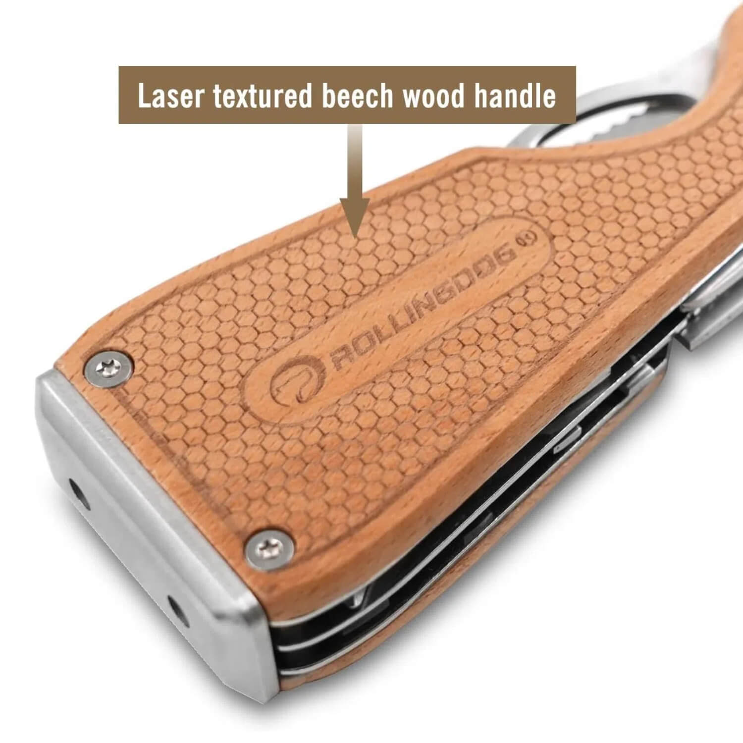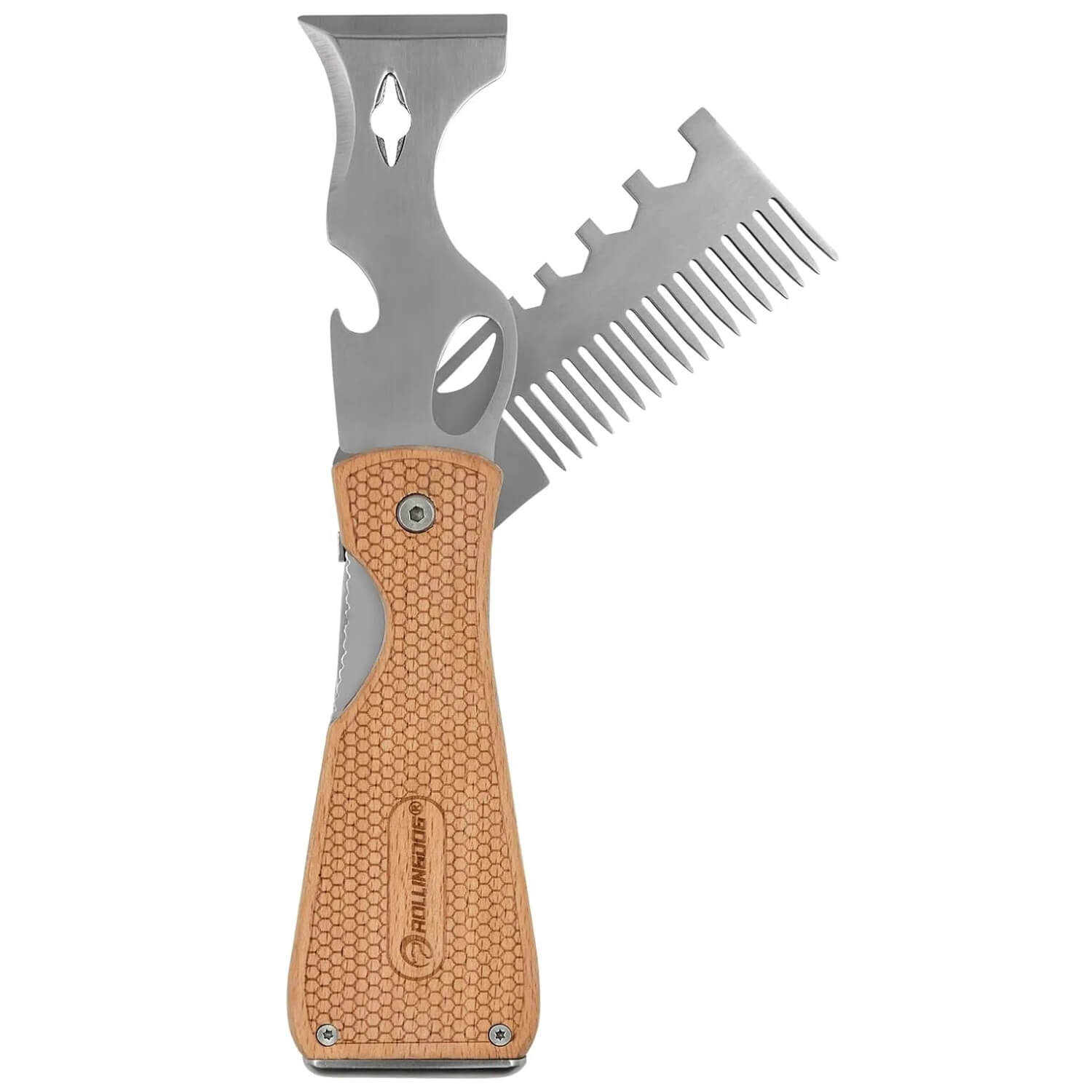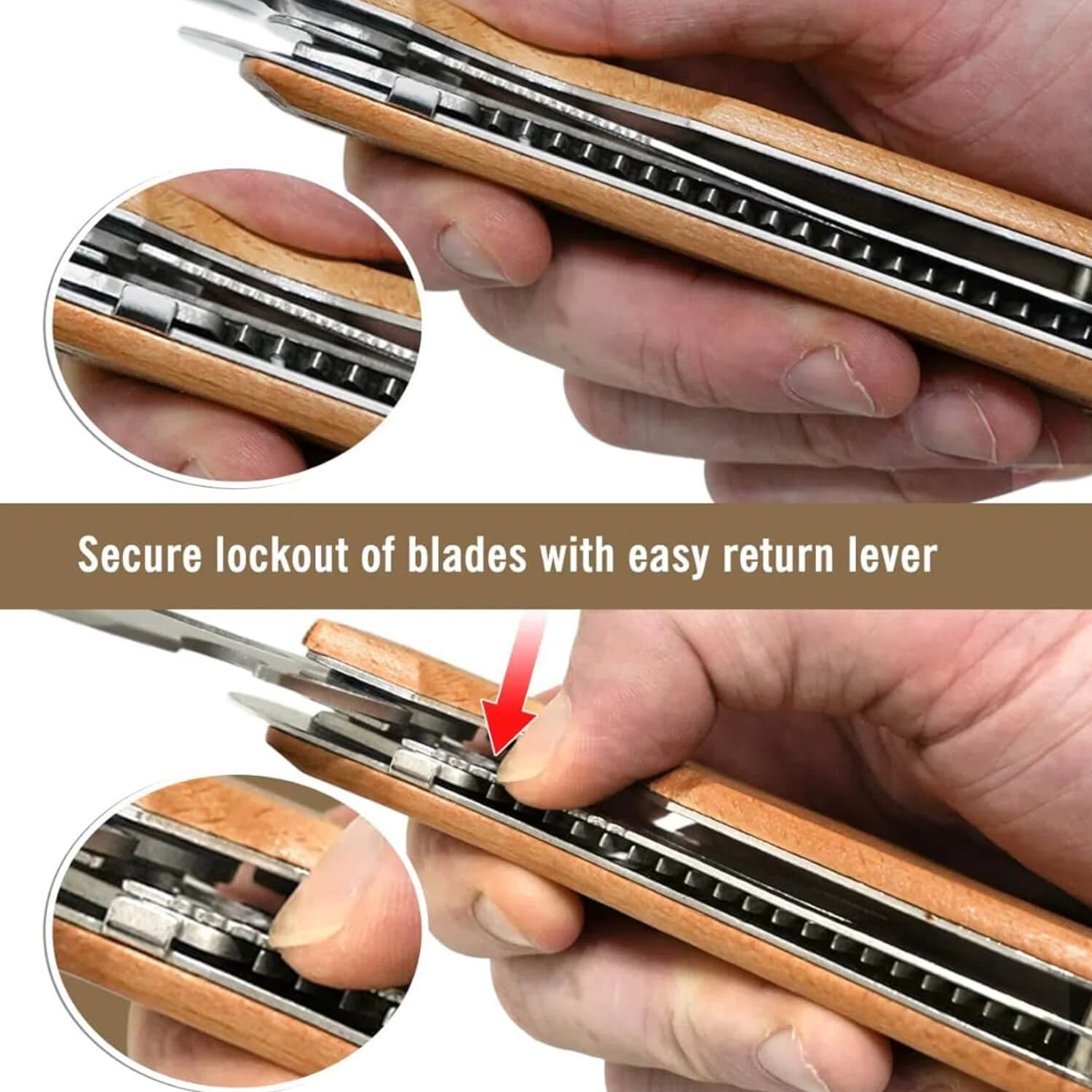 - Folding Design – Dual stainless steel #420 blades fold out and lock securely for use, then fold back into a durable beech wood handle.