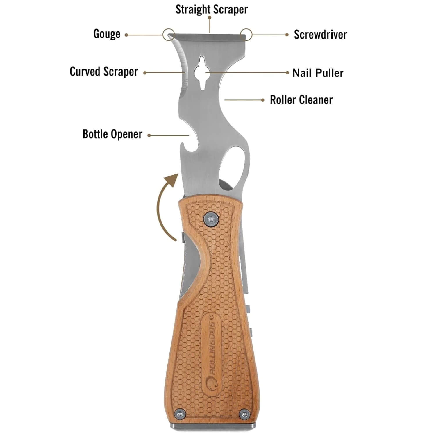 A compact, heavy-duty 13-in-1 folding tool that combines a scraper, roller and brush cleaner, nail puller, and more—designed to make every painter’s job easier.